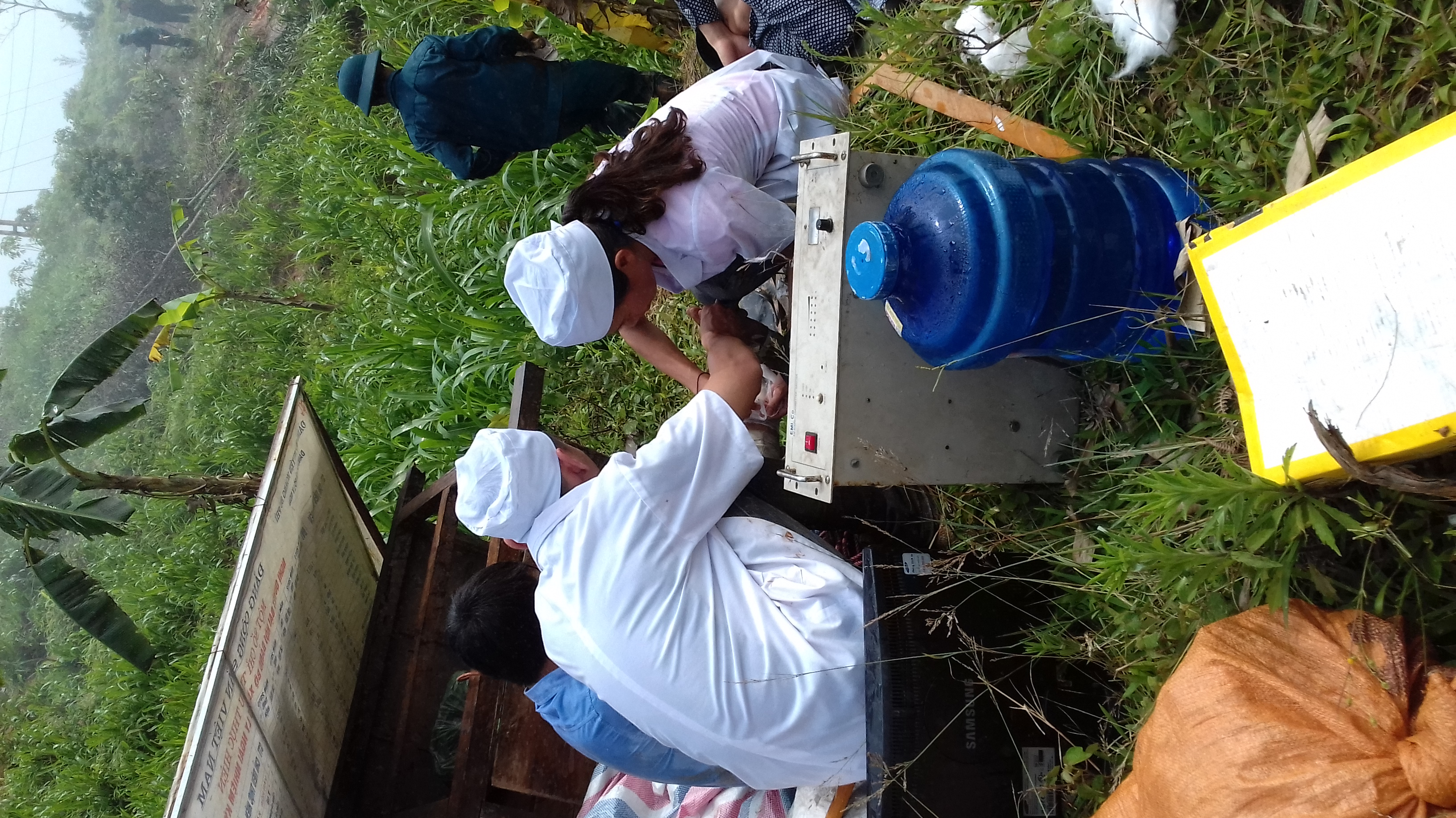 Các y, bác sỹ trạm y tế xã Pờ Ly Ngài đang cứu người bị thương do lũ bão xẩy ra.