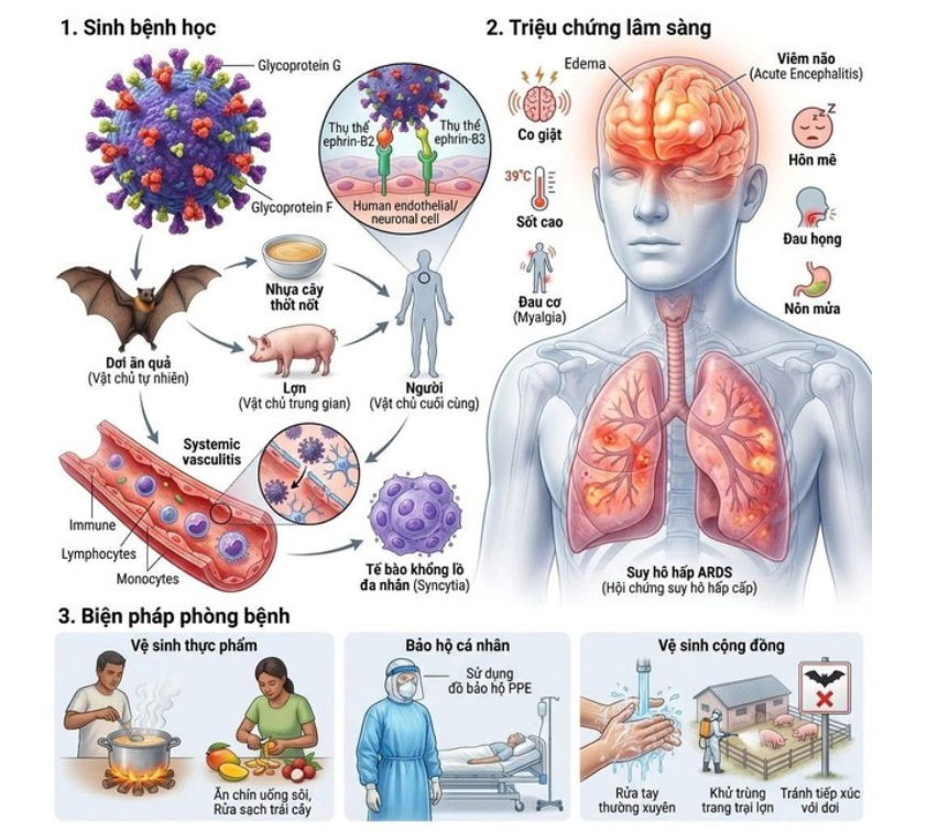 Virus Nipah là một virus nguy hiểm hiếm gặp, có thể gây viêm não và viêm phổi nặng, với tỷ lệ tử vong cao nếu không được phát hiện và chăm sóc kịp thời.